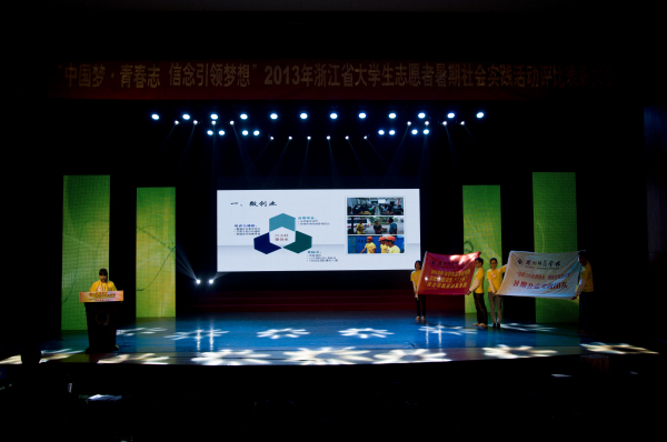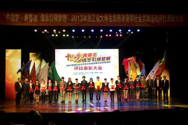 11月16日,我校“微创业 微公益 微梦想”暑期社会实践团队赶赴浙江工商大学,参加“中国梦 青春志 信念引领梦想”主题实践活动暨2013年浙江省大学生志愿者暑期社会实践评比表彰大会。来自全省80多所高校的184支团队经过层层选拔,前20强团队进入当天的省级十佳团队PK赛。我校“三微”团队凭借其创新的实践形式以及丰硕的实践成果得到了评委的一致认可,荣获浙江省十佳团队称号。