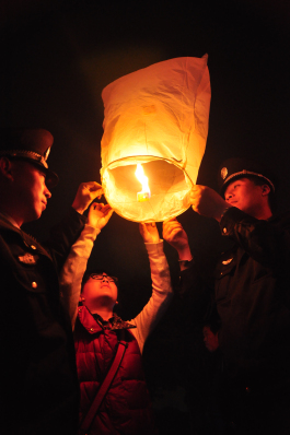 活动现场,所有人陆续点起满载祝福的孔明灯,捧起手中的蜡烛,在由祈福蜡烛排列成的“双手捧心”状图案面前默默伫立,诚挚地祈祷着。校保安人员一列笔直的站姿,神情凝重的肃立在人群中,用他们自己的方式向这位值得尊敬的榜样送上自己的祝福。“他是我们所有保安的榜样,对我们肩上担负的责任感作了最好的诠释,我们向他致敬,也希望他能够平安健康。”学校保安队相关负责人表示。