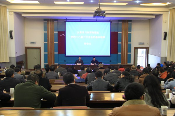12月12日,中共浙江省委党校副校长、硕士生导师郑仓元教授应邀来校作十八届三中全会辅导报告。校党政领导班子成员出席,全体中层干部,民主党派、知联会负责人,教授,两课教师,教工党支部书记,青年干部和青年教师代表等一起聆听了本次报告会。报告会由校党委副书记钱坤方主持。