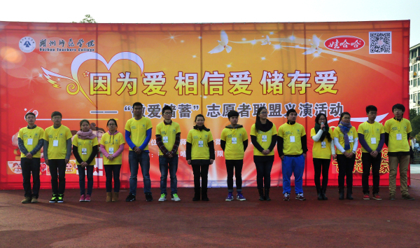 12月18日下午,“微爱储蓄”志愿者联盟举办了以“因为爱、相信爱、储存爱”为主题的校园广场义演活动,参与义演的是在今年校园歌手大赛获得前三甲的歌手以及往届大赛的冠军,希望通过校园歌手超高的人气及优美的歌声集结更多志愿者,汇聚爱心,募集“微爱储蓄金”。