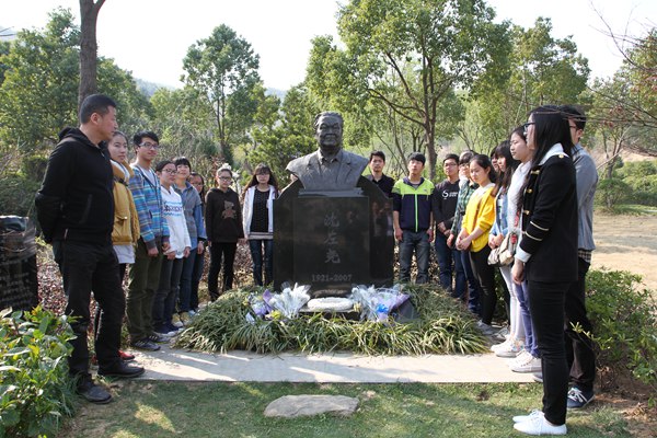 3月23日,清明节前夕,学校沈行楹联艺术馆、宣传部、外事处、资产与后勤管理处负责人和二级学院师生代表一行20余人,陪同沈左尧先生之子——香港思维集团总经理沈龙先生,前往枫树岭生态陵园祭拜沈左尧先生。