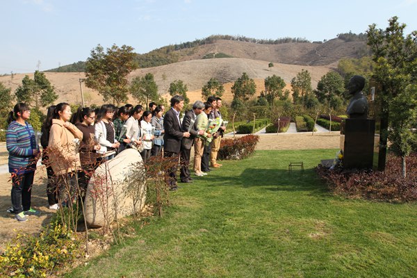 清明节前夕,学校两赵纪念馆、宣传部、外事处、资产与后勤管理处负责人和二级学院师生代表一行20余人,前往枫树岭生态陵园祭拜赵紫宸、赵萝蕤父女。
