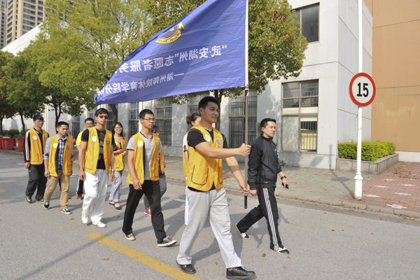 3月30日上午,“武·安湖州”志愿者服务队成立暨“巡走的力量”第一次主题活动启动仪式在爱山广场举行。体育学院志愿者代表参加了启动仪式。湖州市公安局党委委员、副局长徐伟明、湖州市体育总会会长陆叙林、湖州市武术协会主席张毅教授等领导出席了活动并为各分队授牌。