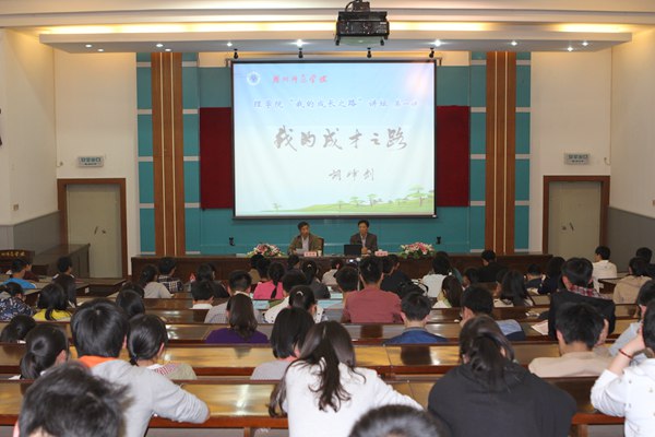 胡校长以一句“报一报我的流水账”入题,毫无保留地和大家讲述了他特殊年代的成长历程和成功经验。从因文革而致荒废的基础教育到凭借自己不懈努力跨入大学接受高等教育,从脚踏实地、兢兢业业从事助教工作到刻苦钻研、力争上游珍惜进修机遇,从教书育人岗位到管理领导岗位,这一切生动勾勒出了他丰富而又充实的成长成才轨迹。