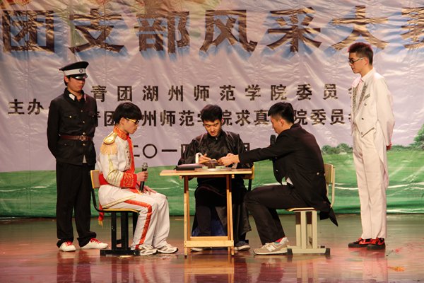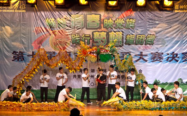 决赛设置风采展示和才艺展示两个部分。在风采展示中,各个团支部通过照片、视频等形式真实记录了支部的点点滴滴生活,并将团日活动,志愿服务等体现当代大学生优秀品质的画面被搬上荧幕。才艺展示环节中,各支部结合专业特色,通过舞蹈、喜剧、小品、朗诵等形式展现支部魅力,集中展示了近一年基层团组织建设成果。体育系20112332团支部,为观众带来了一场舞龙盛宴。男生气势恢宏地挥舞着长龙,黄与绿的鲜明对比带来强烈的视觉冲击,活灵活现的双龙戏珠更是令人赞不绝口,而整齐划一的步伐则踏出作为体育人的骄傲与担当;工学系20122836团支部以“那些年我们班没有女生”呈现了一幕校园轻喜剧,告诉大家追梦的路程并不是只身一人,还有一帮好兄弟永远陪伴、支持;经管系紧凑的小品剧更是为观众展示了湖商文化的起源和湖商身上流淌的民族爱国情。此次团支部风采大赛节目类型丰富。从热门综艺节目中国梦想秀到自编自导的话剧,从大气恢弘的革命爱国主题到众说纷纭的社会现象,从流行到历史,各支部用自己的畅想演绎了心中的中国梦。