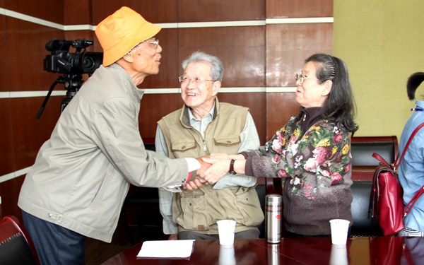 “快看,快看,他们来了……”“哎呦,好像胖了……”5月12日,早早地就到了学校的萧忠柄老先生,站在会议室的门边,与老伴儿一起迎接好久不见的老同学。