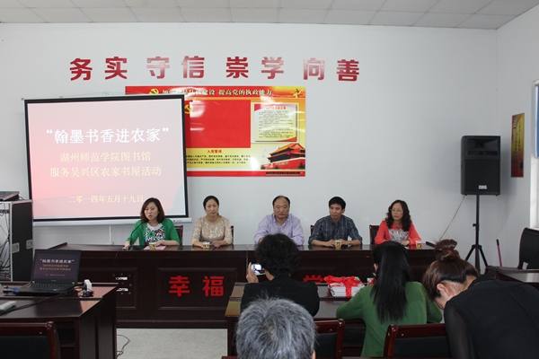 5月19日,我校图书馆在吴兴区环渚街道瑶台村举行了服务农家书屋赠书仪式。吴兴区文体局局长蒋立敏、我校图书馆馆长龚景兴、和村民代表、有关人员等近50人参加仪式。