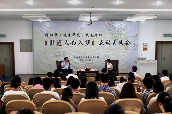 5月28日下午,优秀校友、德清县委常委、宣传部长张林华带着自己的新作《世道人心入梦》与我校学生开展互动交流,畅谈写作心得。张林华脱下干部身份,以学长的口吻,真诚坦率地与现场200名文学院学生进行面对面交流,畅谈写作、梦想、世道人心。