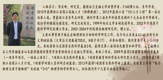 李庆峰:我研究的内容就要和我本身对知识的喜好联系起来了。相对而言,我比较偏爱基础理论研究,如物理中的经典力学、量子力学、相对论等等。而较为前沿的核物理中最为基础的就是核物质状态方程,其一般意义上的目的是研究核力的具体形式,具体来讲,就是研究微观非平衡动力学输运理论及核物质相图。