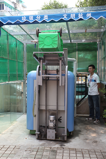 这套厨余垃圾终端设备共分为四大部分:上料系统、粉碎系统、脱水系统和分解处理系统,能自动把骨头、菜叶等有机物粉碎、脱水,经过8―24小时微生物的作用,变成棕色的粉末,也就是氮磷钾含量高的有机肥。一天大概能处理300公斤的厨余垃圾,经过这套设备的处理,可以产出大约60-90公斤的天然有机肥,不仅可以养花养草,还可以种植蔬菜。这套设备的优点是占地小、处理成本低、使用方便。目前在全国尚属首例。