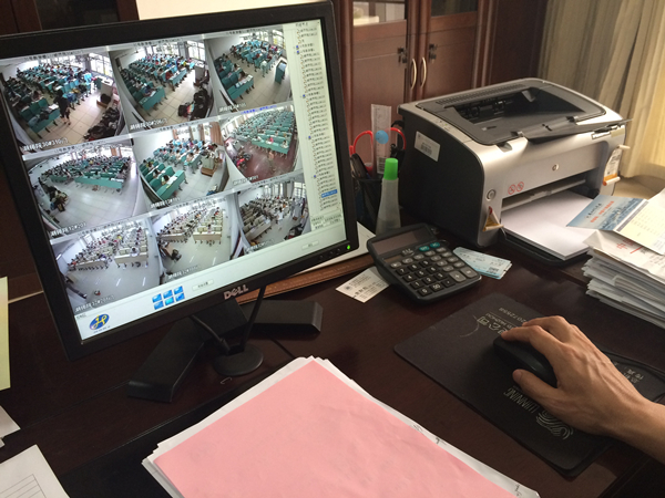 我校今年期末考试首次启用标准化考场,在视频指挥中心全程调看考场的考试实况,考试情况全过程录像、存档,如果考生对违规行为有异议,也可通过存档录像查看。