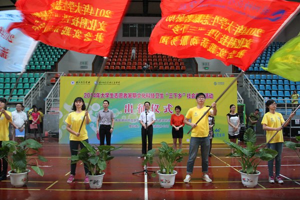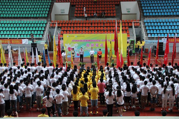 大学勤学修身,以德载物,明辨之,笃行之。6月27日,我校2014年“为祖国勤学修德•以实践明辨笃实”大学生志愿者暑期文化科技卫生“三下乡”社会实践活动出征仪式在燕英体育馆举行。校党委副书记杨柳、团市委副书记王剑峰出席,党委宣传部、教务处、学工部、校院两级团委负责人及1000多名志愿者代表共同参与了启动仪式。