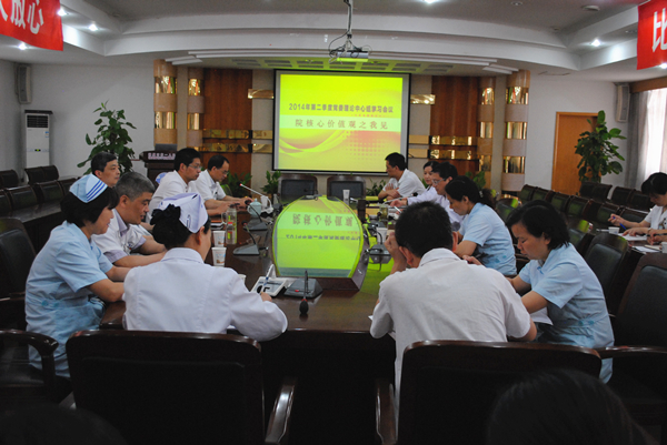 为培育和践行社会主义核心价值观,提高医院管理和服务水平,近日,附属医院党委理论中心组开展了核心价值观大讨论,党委理论中心组成员、各党支部书记参加了讨论,会议由党委书记朱鸣主持。