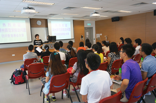 香港浸会大学行政处助理处长陈露玲女士为交流团介绍了学校概况、发展历程和开展“全人教育”的现状。历史系罗婉娴博士给同学们介绍了香港的历史沿革、文化传播、发展过程及现状。协理副校长暨传理学院院长黄煜教授和同学们就“回归后之香港传媒”话题作了精彩交流,与同学们分享了对香港社会现状的看法,回答了同学们关心的关于如何申请研究生等问题。