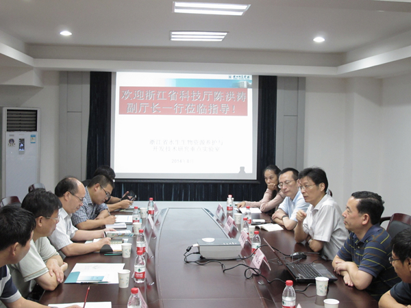 8月20日,浙江省科技厅副厅长陈洪涛、条件处处长王桂良、省科技发展战略研究院副院长刘文献一行,在湖州市科技局相关负责人的陪同下参观考察了我校省水生生物资源养护与开发技术研究重点实验室。校长胡璋剑,副校长、省重点实验室主任叶金云出席接待,科技处、生命科学学院相关负责人参加了座谈。