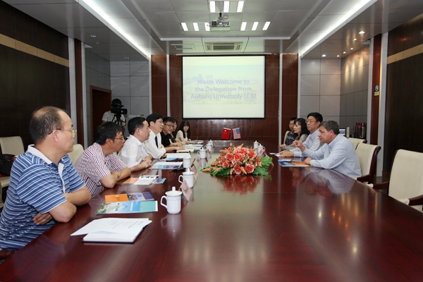 刘占江对我校的热情接待表示由衷感谢,并详细介绍了奥本大学的12个院系分布情况和正在推进“增加外国学生1000人”计划。他表示,奥本大学对同我校合作建立“3+2”合作办学项目怀有浓厚兴趣,并邀请我校领导前往美国进行实地调研访问。