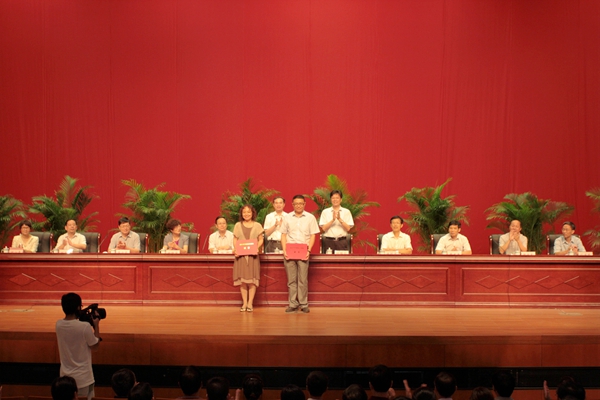 最后,胡璋剑围绕“责任”、“修养”、”治学”三个关键词对全体教职工提出了殷切希望,希望教师们做学校改革发展的推动者,以社会主义核心价值观引领师资队伍建设,做高水平学术成果的创造者,以更加饱满的热情、更加出色的业绩,为建设有特色、高水平的区域性大学作出更大贡献。