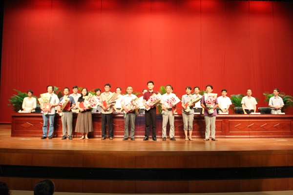 会议对从教三十年教龄教师、首届“陆增镛教师奖”获奖教师、省高校优秀教师、省高校先进基层党组织、全国高校微课教学比赛获奖教师等进行了表彰。