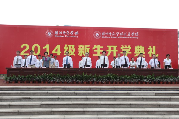 9月17日下午,湖州师范学院、湖州师范学院求真学院2014级新生开学典礼在长兴广场隆重举行。校党委书记刘剑虹,校长胡璋剑,党委副书记杨柳、钱坤方,纪委书记徐桂宝,副校长黄建平、蒋云良、叶金云,党委委员、组织部长沈建民,党委委员、宣传部长何小青出席,党委院长办公室、教务处、招生就业处、学生处负责人,各学院、求真各系党委(总支)书记和教师代表,来自25个省(市、自治区)的4700多名本科生和33名研究生参加了开学典礼。开学典礼由杨柳主持。