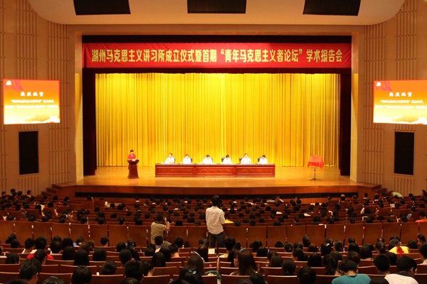 据了解,湖州马克思主义讲习所是浙江省首个成立的马克思主义讲习所,是湖州市委宣传部、湖州师范学院为发挥宣传部门实践经验优势和高校学科及人才资源优势,合力推进湖州马克思主义理论研究和宣传普及工作而共同组建的工作机构。讲习所挂靠在我校政治学院,下设“一个基地,两个中心”即马克思主义理论普及工作研究基地、理论大众化骨干队伍培训中心和青年马克思主义者培育中心。讲习所现聘有主讲教师31人,其中教授9人、副教授11人;主讲教师中有博士14人。讲习所致力于增强师生马克思主义理论素养,提高理论宣传骨干能力素质,探究理论普及工作内在规律,提升全市理论普及水平。
