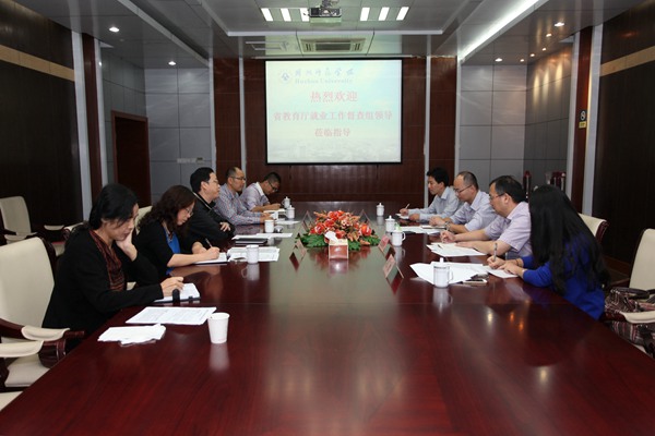 9月22日,省教育厅高校毕业生就业率抽查组何星舟一行来校检查我校2014届毕业生就业情况。校党委副书记杨柳出席,招就处部门负责人参加汇报会。