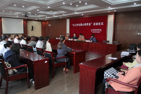 11月20日下午,我校举行“九三学社爱心助学金”启动仪式。校党委副书记杨柳,湖州市政协副主席、市环保局副局长、九三学社湖州市委员会主委高东出席,校统战部、学生处负责人,九三学社湖州师范学院委员会主委,各下属学院辅导员代表及全体受助学生参加了仪式。