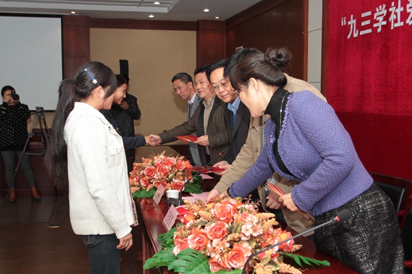 据悉,“九三学社爱心助学金”是由九三学社湖州市委员会在我校捐资设立,专门用于资助品学兼优的家庭经济困难学生,总额20万元,自2014年开始分四年连续发放。除了捐资助学以外,九三学社的社员还将与受助学生开展结对帮扶,从学习、生活、就业等方面提供悉心的指导和帮助。