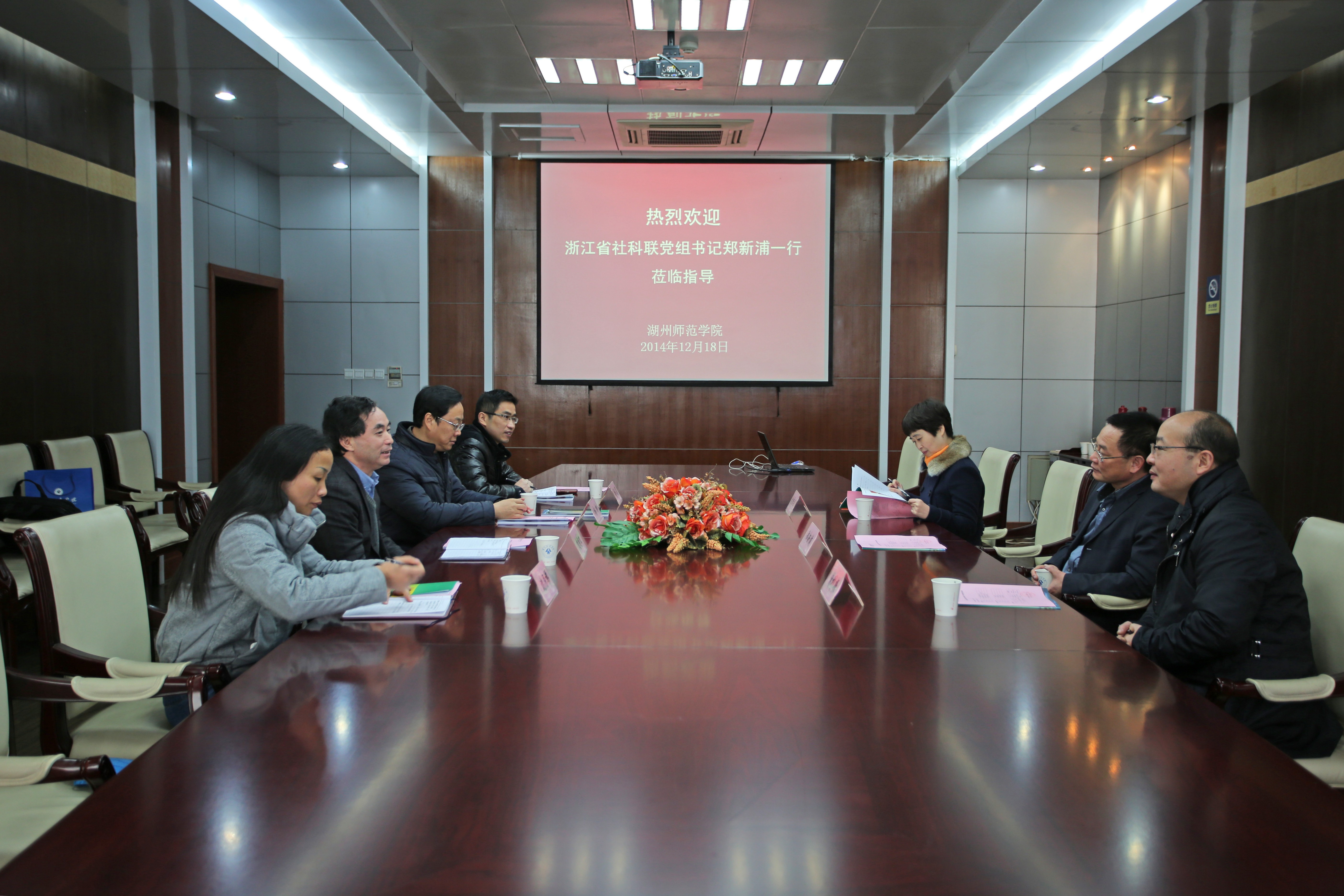 12月18日,浙江省社科联党组书记郑新浦,省社科联党组成员、办公室主任谢利根在湖州市社科联副主席沈梦月的陪同下来校,对我校人文社科工作开展专题调研指导,校党委书记、社科联主席刘剑虹,校党委副书记、社科联常务副主席杨柳出席了调研会。