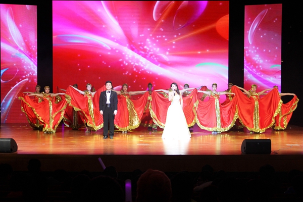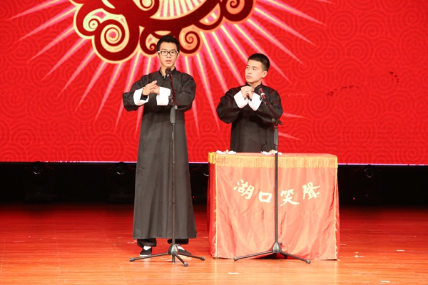 一段来自各个家乡同学祝福的《2015年我想对你说》开场视频拉开了晚会序幕,在古典水墨的LED背景的衬托下,古典韵味的器乐演奏《风含情水含笑》给人以高山流水的自然清新、鸟语花香的轻盈灵动;工学院学生以《梦起航》为主题,首次把室内航模花式表演搬上了舞台,淋漓尽致地展现了工学男儿的智慧与创意;医学院学生带来的B-box《Hands Up》把嘻哈文化带到了舞台,展示了大学生对生活的积极态度;配以LED大屏展出的泰姬陵,舞蹈《天竺之韵》尽显异域风情;看似谈话随意的相声表演《满腹经纶》,让现场响起一次又一次笑声和掌声;充满活力的舞姿,激情动感的音乐,体育学院健美操运动员动感的舞姿和旋律配合到位,瞬间带动全场的气氛;架子鼓的律动,贝斯的和弦,十佳歌手优美的歌声回荡在整个会堂;拉丁舞的动感,蚕花吟的柔美,带领在场观众分别感受了舞蹈的不同风格和形式;艺术学院教师用嘹亮的歌声,美妙的歌喉演绎《阳光路上》,更是使晚会带入了高潮,赢得了在场观众的阵阵掌声。最后,晚会在各学院学生代表和红柳艺术团舞蹈队表演的《幸福到来你就拍拍手》中落下帷幕。