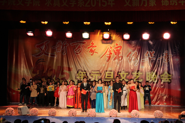 12月21日,文学院、求真文学系“文新万象 锦绣年华”2015年元旦文艺晚会在梦想剧场举行。文学院领导和1000余名师生一同观看了演出。