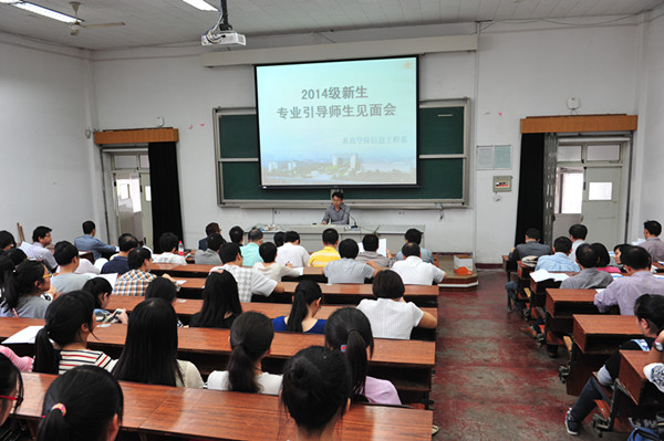 学院高度重视大类招生工作,开学初就对每位新生进行了随机分组,并为每个组随机安排了一位专任老师,作为学生成长成才的参谋。9月24日,2014级新生专业引导师生见面会拉开专业引导工作序幕。会议重点对学院《专业引导实施办法》进行解读,要求在专业引导过程中坚持公开、公平、公正原则,做到全院教师人人参与,做好全方位专业引导。会后,学生与导师进行了第一次面对面的交流。