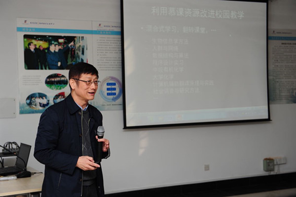 李晓明做了“同步利用慕课资源开展翻转课堂的实践初探”的讲座,通过自己的翻转课程《人群与网络》生动地介绍与诠释了最新“MOOC+翻转课堂”教学方式,并鼓励老师亲自体验“翻转课堂”。