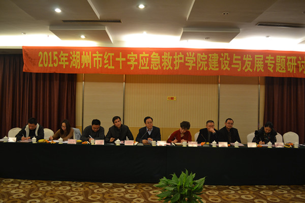 1月30日,我校召开2015年湖州市红十字应急救护学院建设与发展专题研讨会。校党委副书记、校红十字会会长杨柳,市红十字会常务副会长吴康丽出席,湖州各县区红十字会及我校地方服务与合作处、学生处、保卫处、校团委、医学院•护理学院等负责人,湖州市红十字应急救护学院建设探索项目组成员,湖州市红十字应急救护培训专职工作人员、骨干师资和骨干志愿者代表等近30人参加了研讨会。