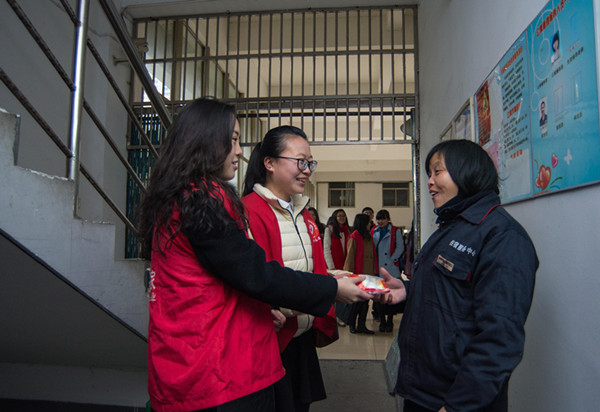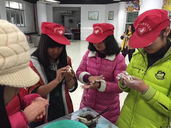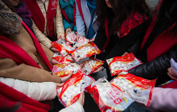 值得一提的是,今年三五雷锋日恰逢元宵节,外国语学院的同学们为老师送上暖暖的汤圆,浓浓的师生情洋溢在校园的每个角落。校学生干部以集体的名义在校园内给寝室阿姨大伯送汤圆,送祝福,简单而温暖的方式,传送他们真挚的情感。