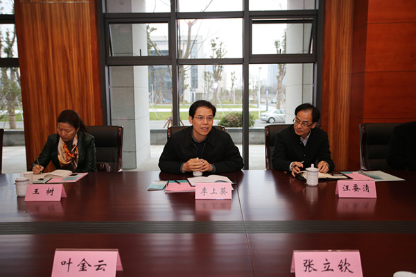 3月9日下午,湖州市副市长李上葵在市政府副秘书长汪蚕清、市人力资源与社会保障局局长王树、市科技局局长王志芳陪同下来校考察调研。校长张立钦、副校长叶金云出席,人事处、科技处、人文社科处、学科规划与建设处、地方服务与合作处等职能部门负责人参加座谈。