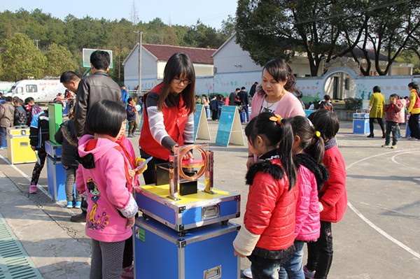 3月25日,理学院科技志愿者跟随湖州科技馆“科技大篷车”赴长兴县泗安镇仙山村仙山中心小学,为那里的农村小朋友送去一场别开生面的科技盛宴,让他们第一次接触到从前只能通过书本和想象了解的科技作品。