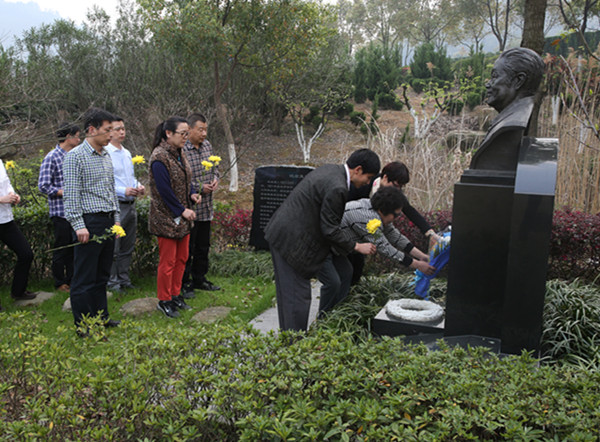清明时节,学校党委宣传部、对外联络与发展处、学生处、外事处、资产与后勤管理处、图书馆等单位师生代表一行,陪同沈左尧夫人封圣华女士, 儿子沈龙先生前往枫树岭生态陵园祭拜沈左尧先生。