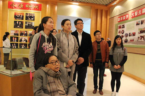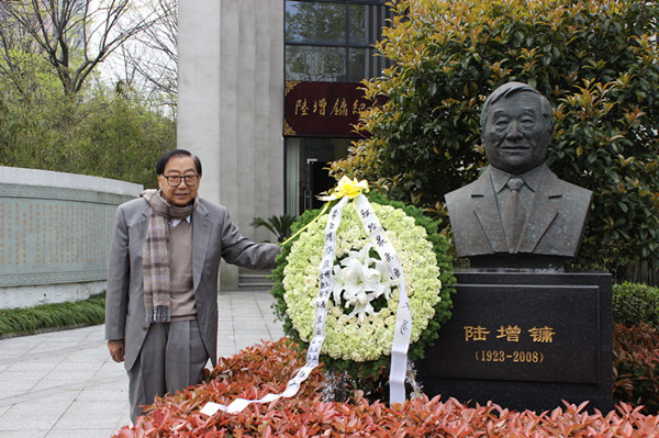在校领导和学生代表的陪同下,陆增祺向兄长陆增镛敬献花圈,缅怀亲人寄托哀思,随后参观了陆增镛纪念馆。陆老感概这一行让他回忆起了青年时期于贫困中勤恳打工、中年时期与兄长一起奋斗创业,退休后依然追逐新梦想的人生经历。