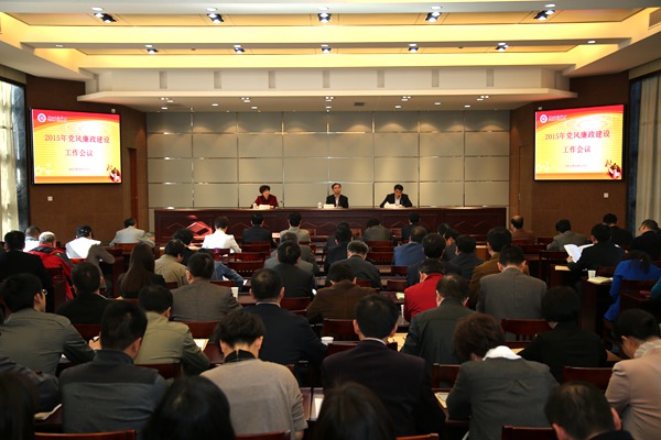 4月22日,我校召开2015年党风廉政建设建设工作会议。会议由校长张立钦主持,校领导班子、全体中层干部、民主党派负责人、特邀监察员、各分党委(总支)纪检委员等参加了会议。