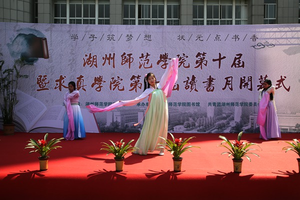 学生代表张妙雯以自己的亲身经历诠释阅读的力量,号召大家积极阅读,用阅读点书香,用阅读筑梦想。图书馆裳歌汉服社同学的舞蹈表演,体现我国古代淑女生活;体育学院的读书操,以动感幽默的方式呼吁大家要养成健康文明的阅读习惯。