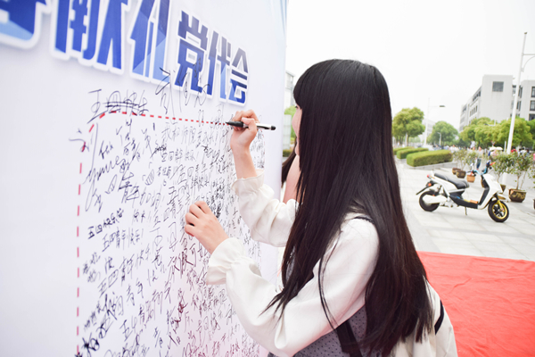 另外,校团委还向全校师生发出“我戴团徽我光荣”倡议。团委、学生会干部成员率先带头起来佩戴团徽,倡议同学们身体力行“五四”精神,做当代青年的先锋;传承“君子之风”,做时代文明的先锋。现场也有同学表示:“通过此项活动,让我更深切地感受到了自己作为共青团员的使命感和光荣感。”