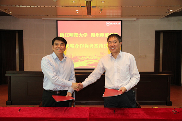 会上,蒋国俊、张立钦代表学校,签订了《浙江师范大学 湖州师范学院战略合作协议》。根据协议,在今后五年内,浙师大与我校将开展联合培养硕士研究生工作,重点支持教育学科学位点建设;每年接收我校20名左右学生赴浙师大交流培养;支持我校优秀青年教师、思政教师和管理干部赴浙师大学习进修、培训交流和挂职锻炼;支持我校农村发展研究院打造省级社科重点研究基地;支持我校外国语学院相关教师参与非洲研究院的非洲教育研究、非洲历史与文化研究等;合作探索留学生教育的培养和管理。