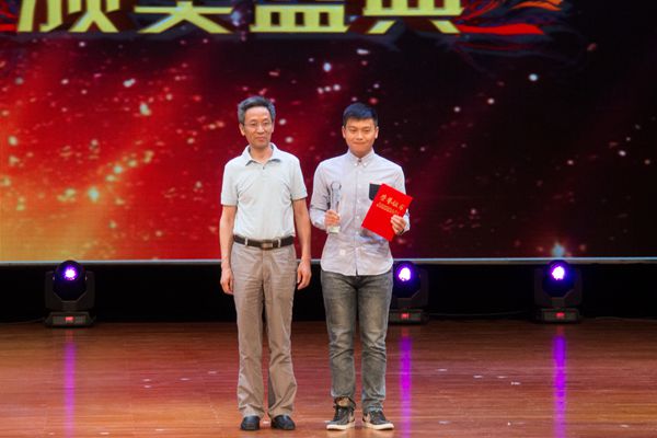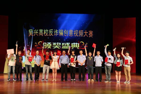 晚会上,沈建民与吴兴公安分局负责人一起为“吴兴高校防诈骗微视频创意大赛”获奖者颁奖。