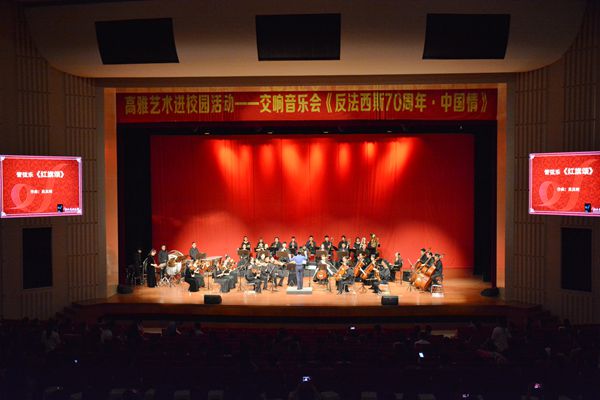 2015年是世界反法西斯战争胜利70周年,校团委紧扣主题,主动对接浙江交响乐团,为师生带来这场视听的饕餮盛宴。这场精彩的交响演出,一方面丰富了校园活动、提高了师生艺术鉴赏力和文化素养,另一方面寓教于乐,在欣赏音乐的同时进行爱国教育,让大家勿忘历史。