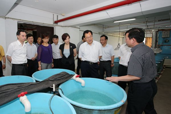 会前,裘东耀一行首先在刘剑虹、张立钦陪同下参观了校园和沈行楹联艺术馆。参观后,在刘剑虹、张立钦、叶金云陪同下实地考察了浙江省水生生物资源养护与开发技术研究重点实验室。