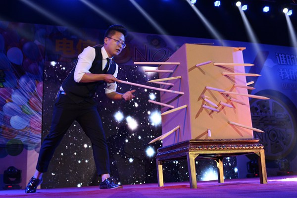晚会在1899乐队的歌声中拉开序幕。在酷炫的LED屏衬托下,一个手势,一次转步,一记挺胯,整齐划一的动作,协调一致的配合,各二级学院学生会主席带来了他们精心编排的舞蹈《Boogy》,活力四射的舞姿,青春洋溢的面庞为我们呈现了学生干部多才多艺的一面。相声演员用诙谐幽默的语言,捧腹逗乐的表演生动活泼地演绎《我的大学生活》,带领在场的同学感受大学生活的美好时光。“因为爱情,不会轻易悲伤。”一袭红色短裙,配合甜美的歌声,由师生一同演绎的歌声串烧瞬间点燃了全场气氛。魔术师方劲松,作为已经毕业的校友回归校园舞台,出神入化的表演更是将现场的气氛推至高潮。“你们轻轻地唤我的名字我依然为你祝福,祝福你们不忘初心,祝福你们有一个灿烂的前程。”由校学生会学生干部一同演绎的诗朗诵《时光为你我饮泣》道出了学生干部幕后的种种辛苦与感动。“昨天我交出了工学院学生会的钥匙,我在学生会的工作已经结束了。但是我觉得这是我最美好的回忆之一,最后我要送给各位学生干部一句话:但行好事,莫问前程。”最后,由校学生会和各二级学院主席上台寄语,讲述了他们三年学生工作的感想,寄托了对未来学生工作的期望,表达了他们对学生工作的热爱与不舍。