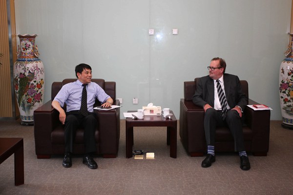 张立钦首先对菲尔·戴维斯校长的到来表示欢迎,并简要介绍了湖州的城市文化与近年来我校的发展规模、学科建设、国际交流、人才培养等情况。他指出,两校间自2009年正式启动合作以来,友谊深厚、成果丰硕,希望双方能继续巩固传统优势项目,拓宽交流渠道,尤其是在新兴专业领域合作上实现新突破,进一步为两校师生的成长和发展提供平台。