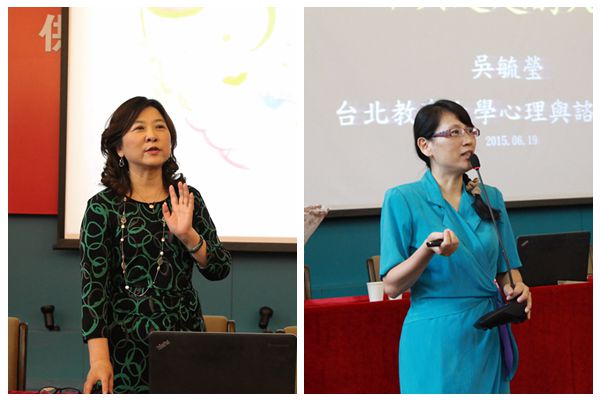 仪式结束后,台北教育大学赖念华教授、吴毓莹教授、李吴泽和我校徐冬英分别做了题为《为母则强——谈华人婚暴妇女生命韧力的介入模式》、《“个体心理学取向——自卑与超越的人生》、《身体的独奏:身体与自我的对话》、《心理画,画中画;绘画心理辅导的实践探索》等专业学术报告,现场反响热烈,并就赖念华教授的心理剧工作坊展开充分研讨和交流,与会代表纷纷表示受益良多,希望能在各自工作领域加强对表达性心理治疗的探索和实践。