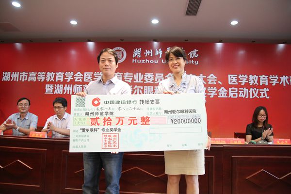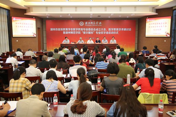 6月23日,湖州市高等教育学会医学教育专业委员会成立大会、医学教育学术研讨会暨湖州师范学院“爱尔眼科”专业奖学金启动仪式在我校顺利举行。校党委书记刘剑虹,党委副书记杨柳出席,对外联络与发展处、学生处、高教研究所负责人、医学院班子成员,湖州市各大医院、湖州爱尔眼科医院、湖州中等卫生专业学校等嘉宾及医学院全体教职工和学生代表参加会议。会议由医学院党委书记钱学芳主持。