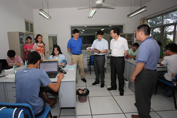 校领导还来到生命科学学院、医学院、信息工程学院和图书馆,看望了暑期仍坚持在实验室做科研、备战竞赛的师生们和考研复习的学生。在实验室,详细询问师生科研项目的开展情况,并对他们付出的辛勤劳动表示感谢;在竞赛实训室,师生们对书记校长的到来表示欢迎,并向校领导汇报了备战情况,刘剑虹一行鼓励他们好好备战,为校争光;在考研学习室,得知很多同学都是早上六点多就来到教室学习,几位校领导非常感动,并让同学们如有困难可提出来,学校能帮助解决的一定尽力而为,并鼓励大家好好备考,争取考出优异成绩。